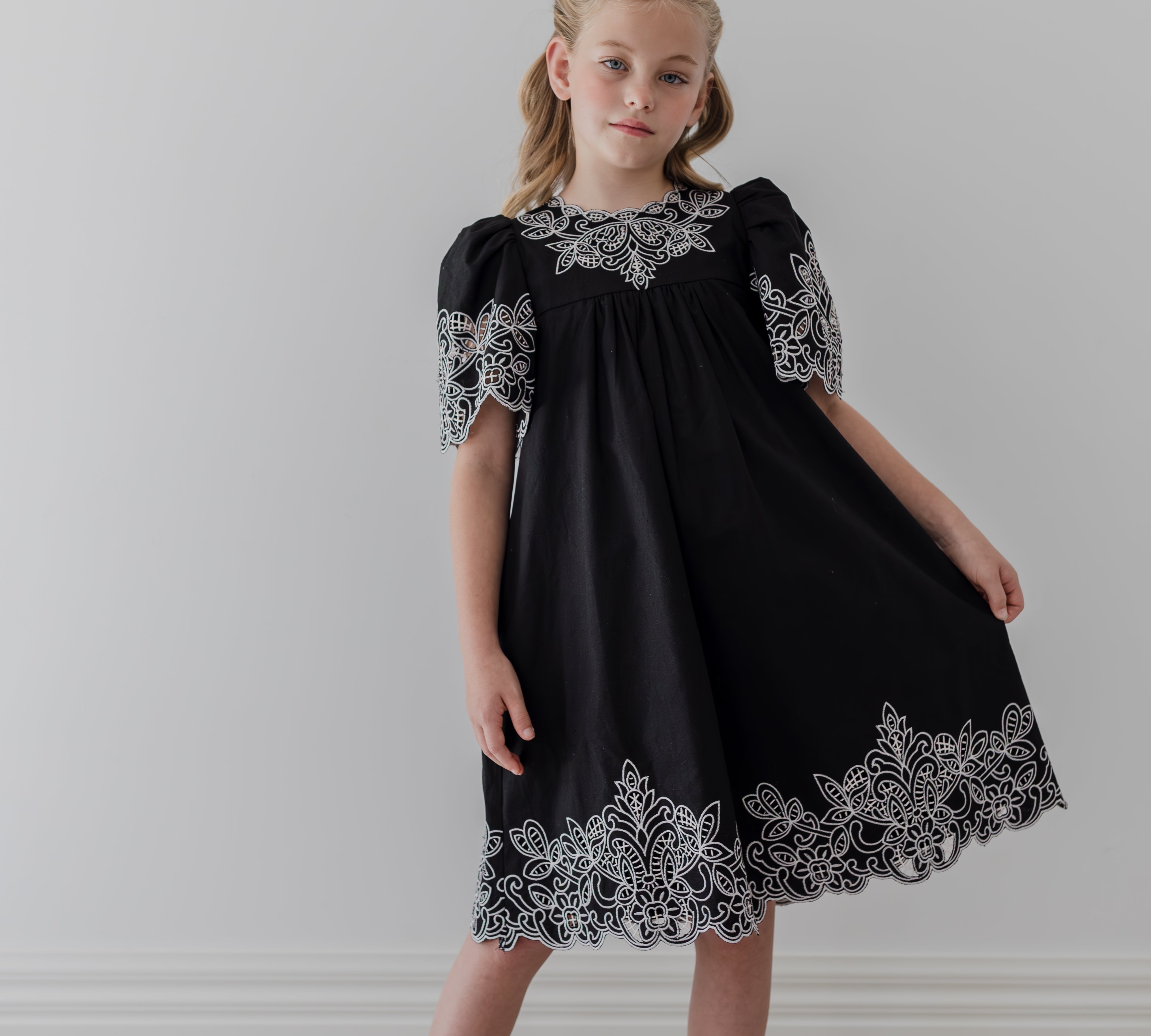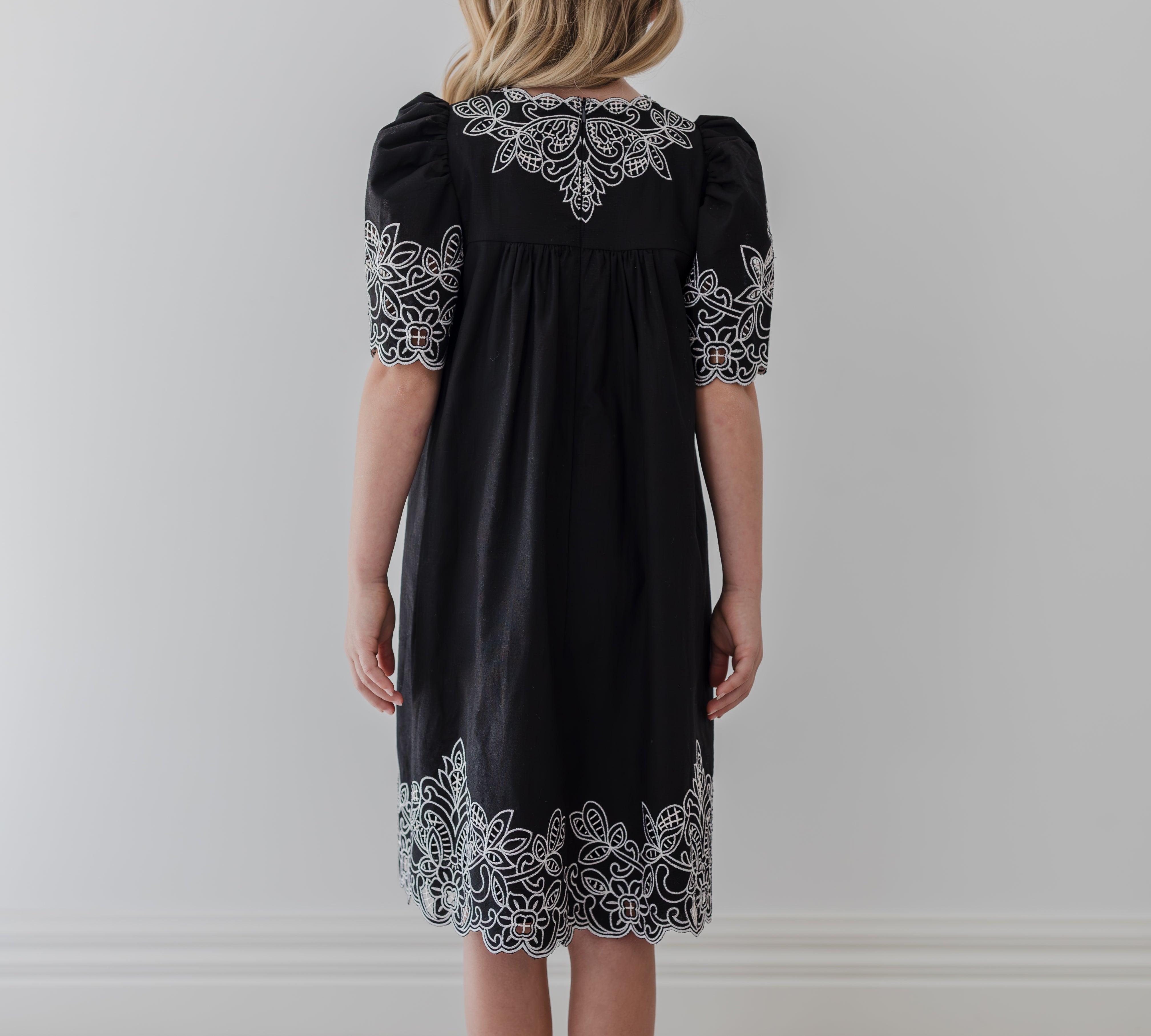 PETITE AMALIE SHIRRED EMBROIDERED DRESS (10-18Y)